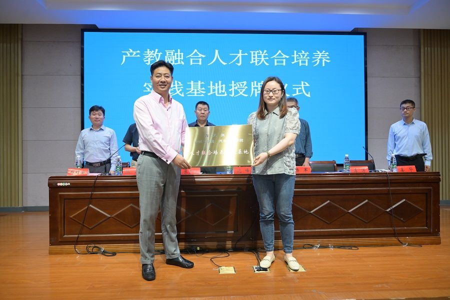 在参会人员的全体见证下,沈峰和姜华现场签订了人才联合培养实践基地协议,并成功完成了授牌仪式。