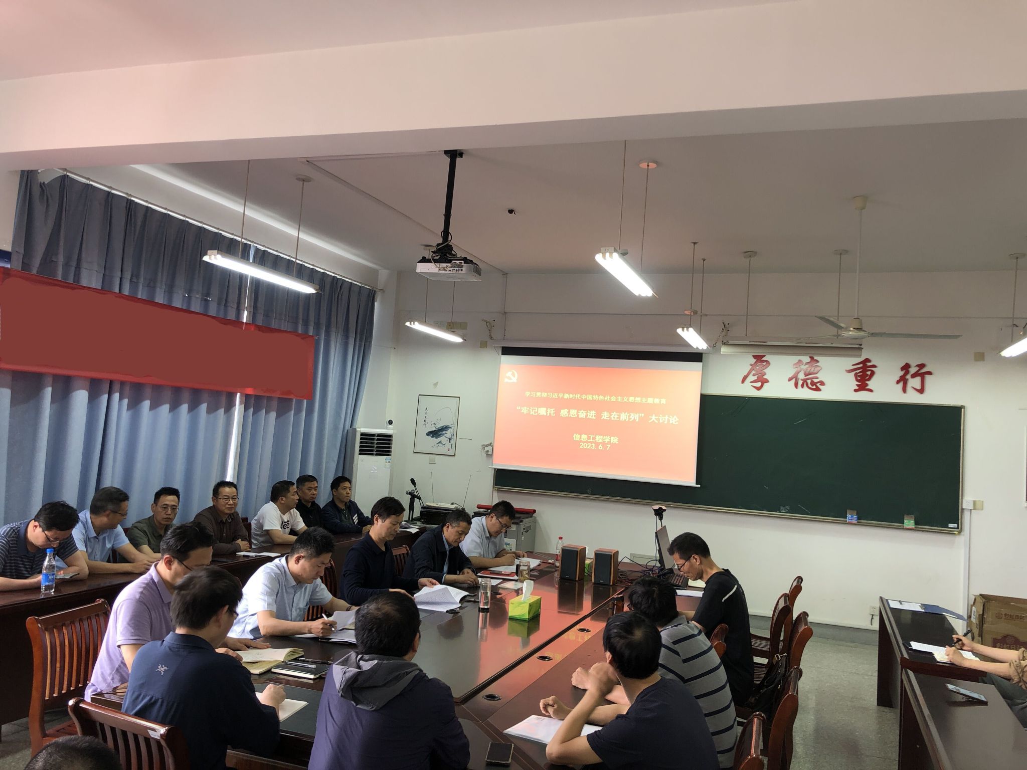 6月7日下午,在怀德楼B410会议室,信息工程学院举行主题教育“牢记嘱托、感恩奋进、走在前列”大讨论会议。学院党委书记王爱军主持会议,学院全体教职工参加。