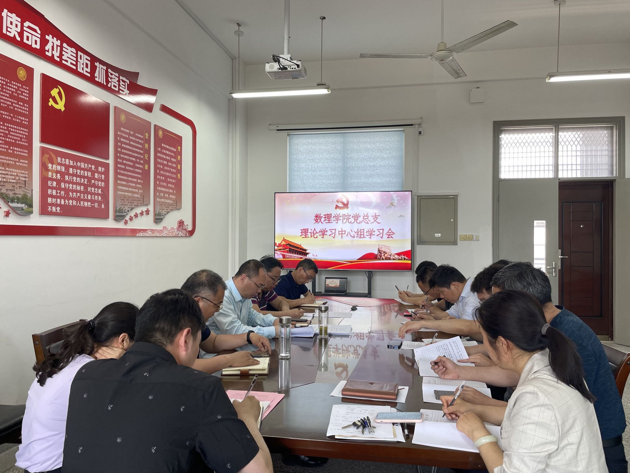 6月9日下午,在希望大道校区博学楼B503党员活动室,数理学院党总支理论学习中心组专题学习习近平总书记在中共中央政治局第五次集体学习时的重要讲话精神。学院党总支书记魏伟华主持学习会,理论学习中心组全体成员参加。