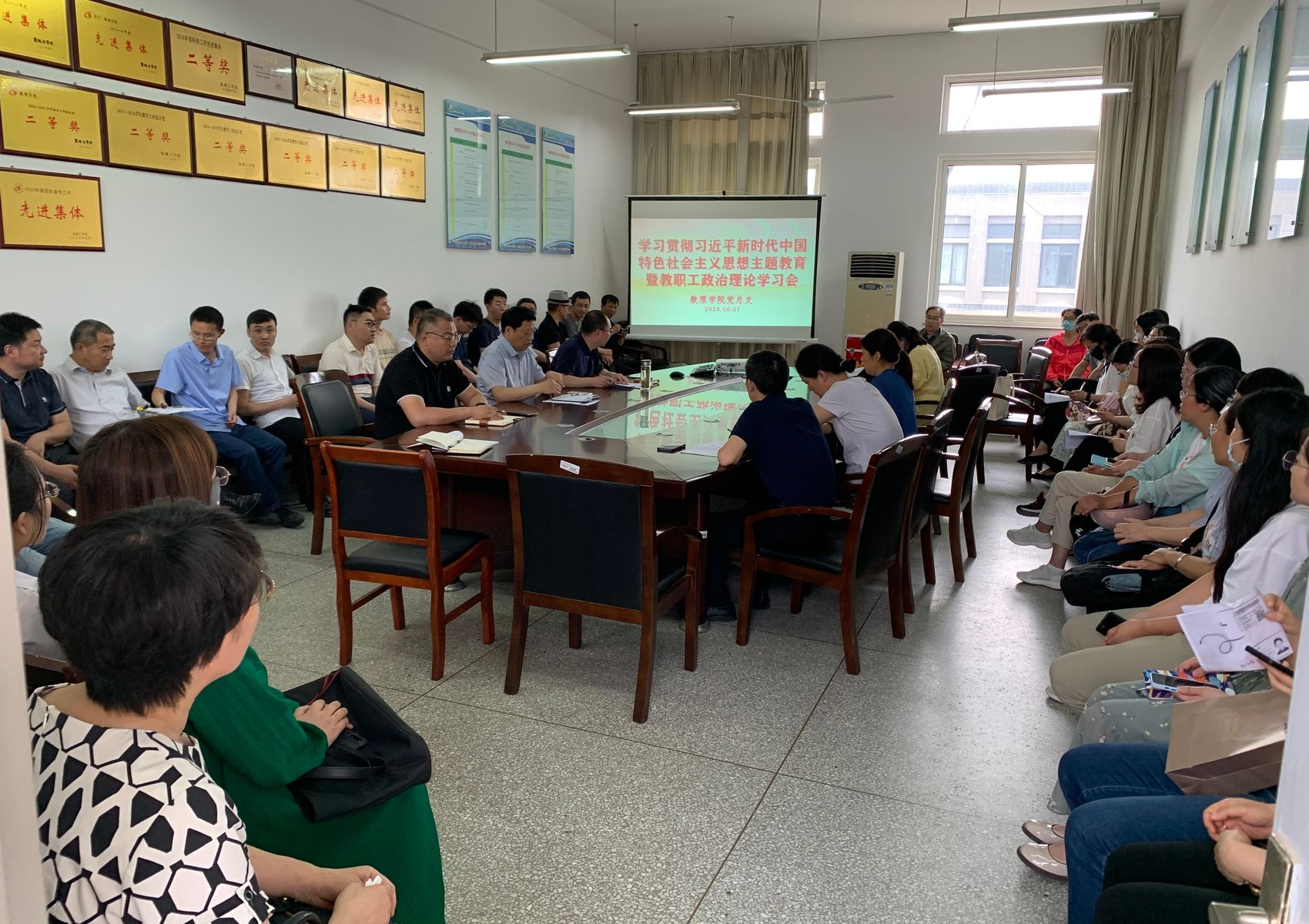 6月21日下午,在希望大道校区博学楼B512会议室,数理学院开展学习贯彻习近平新时代中国特色社会主义思想主题教育暨教职工政治理论学习会。会议由学院党总支书记魏伟华主持,全体教职工参加。