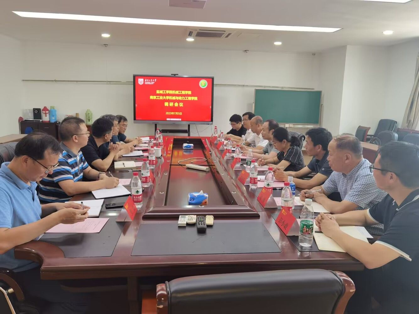 为推进学院教育教学高质量发展,7月5日下午,机械优集学院院长周临震,副院长陈青等一行8人,赴南京工业大学机械与动力工程学院调研交流。南京工业大学机械与动力工程学院院长赵建平,副院长周剑锋,院长助理谭剑锋、专业系主任等参加交流研讨。
