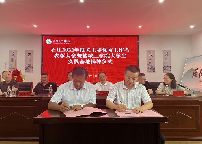 石南社区“明日之星”爱心暑托班发起人、我校“砼心苑”一站式学生社区夏唯壹同学作交流发言。陈广正与柳张峰互签盐城工学院大学生社会实践基地共建协议书。朱凌、陈广正、陈明锦共同为盐城工学院大学生社会实践基地、如皋市爱心暑托班明日之星(石庄站)及红石榴籽课堂揭牌。