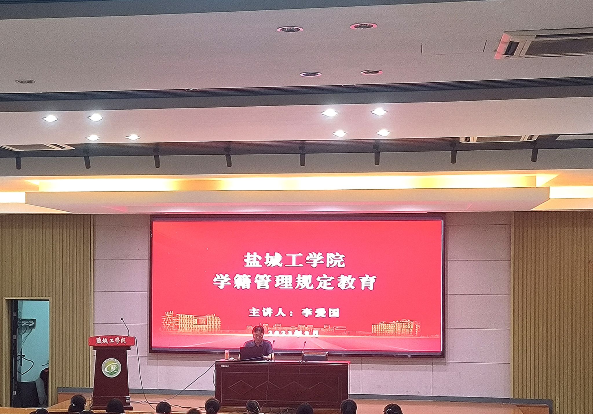 9月12日下午,外国语学院特邀学校教务处副处长李爱国在机械馆报告厅为学院2023级新生开展“大学第一课”学籍管理规定讲座。讲座由学院党总支副书记倪璞主持,新生辅导员徐栋阳和全体新生参加。