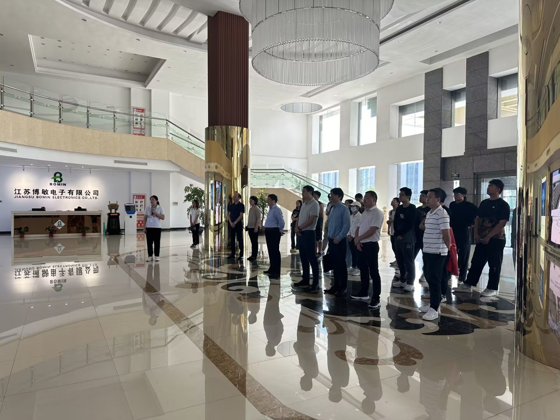 徐子连一行参观了江苏博敏电子有限公司和盐城大丰阿特斯阳光电力科技有限公司,听取企业发展与业务情况,详细了解企业对人才的需求和技术创新需求。毕业生们实地参观了企业生产和工作场所,对用人单位的应聘要求和工作环境有了更直观的了解。