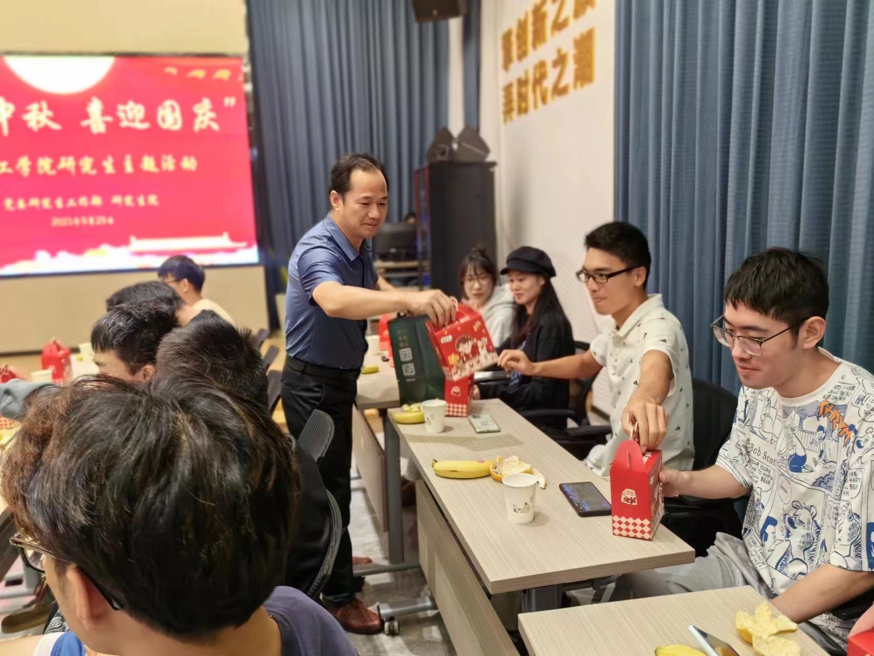 活动最后,学院领导为同学们分发精心准备的中秋月饼,再次送上中秋祝福并合影留念,给予同学们满满的幸福感,给大家留下了美好的回忆。