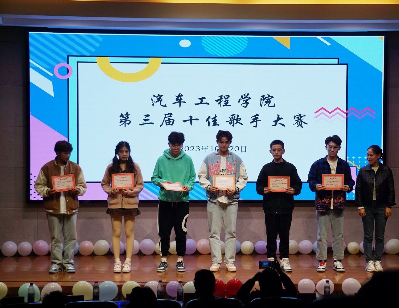 在白热化的角逐中,进入第二轮的十名选手火力全开,在舞台上尽情地展示自我,用动人的歌声和出色的舞台表现为现场观众带来一场视听盛宴。最终,经过激烈角逐,龚咏忆同学脱颖而出,荣获本次汽车工程学院十佳歌手冠军,许泽和杨家豪同学获得亚军和季军。