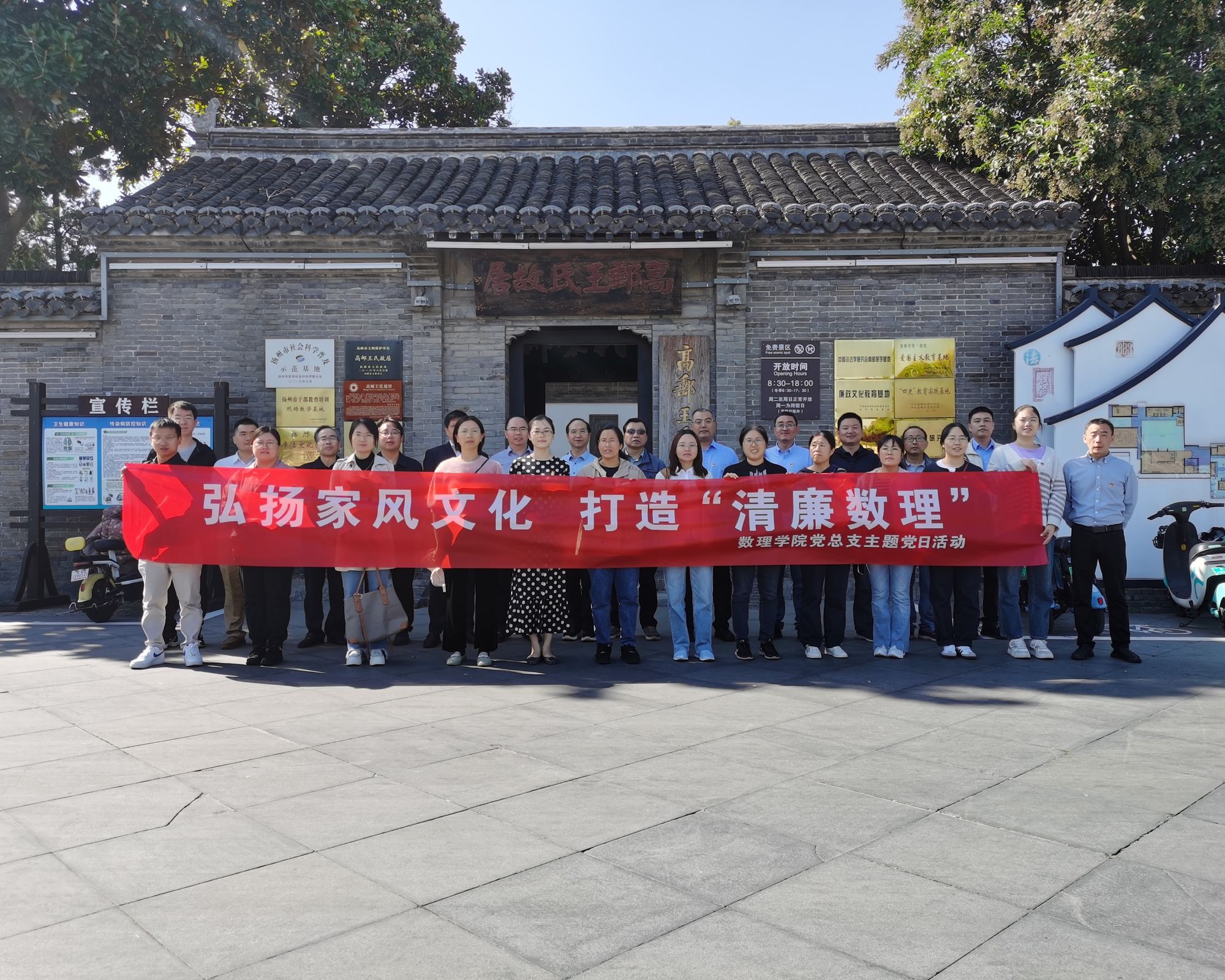 随后,党员们来到高邮王氏纪念馆参观学习。王氏纪念馆是乾嘉学派的杰出代表、扬州学派的中坚学者王念孙和王引之的故居。王氏父子身居高位,但为人刚正,为官清廉,且在音韵、文学、训诂校勘等学术领域硕果累累。