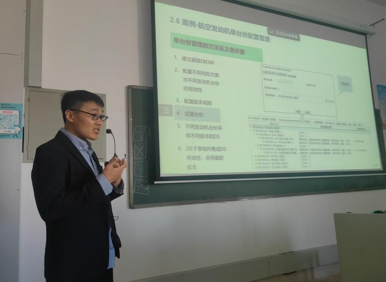 上午,张梦龙以“产品结构与配置管理”为主题,详细介绍了产品结构与配置管理功能模块在设计、工艺、制造方面的应用,并给出相应的实践案例介绍相关功能在企业中的应用。讲授图文并茂、深入浅出,使学生了解了Teamcenter结构管理器如何有效地管理产品全生命周期中的BOM变化历史和不同阶段的有效性,通过配置变量定制出客户化的产品结构信息树,派生出客户化的产品BOM。