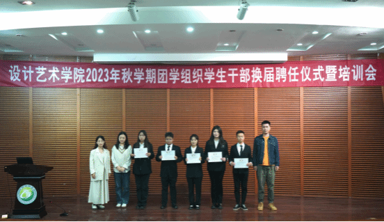 11月1日下午,设计艺术学院在希望大道校区润美楼报告厅召开2023年秋学期团学组织学生干部换届聘任仪式暨培训会。学院党总支书记胡凌霞、党总支副书记杨士卿、全体专兼职辅导员出席,全体团学组织学生干部参加。