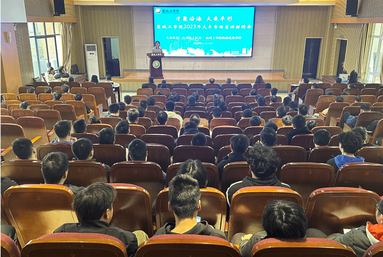 11月10日下午,机械优集学院联合大丰区人社局在南校区机械馆报告厅举办“才聚沿海 大展丰彩”2023年大丰专场宣讲招聘会。大丰区人社局副局长刘加东,校学生处副处长王益群,大丰区人才服务中心主任管锐智、大丰人社局妇联副主席张冰玉、大丰区10家企业招聘负责人,机械优集学院学工办副主任程云庆和毕业班辅导员出席,近两百名毕业生参加,机械优集学院党委副书记马晓英主持。