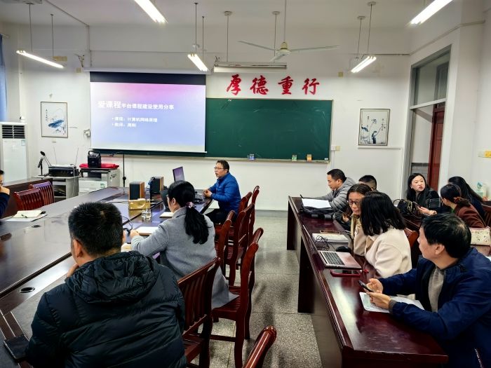 交流会上,孙莉老师就《人工智能导论》课程建设在超星平台上的使用心得进行分享,周刚老师就《计算机网络原理》课程建设在爱课程平台上的使用心得进行分享,王媛媛老师就《电子测量技术》课程建设在雨课堂平台上的使用心得进行分享。三位教师分别展示了课程在网络平台上的各类资源、学生数据等信息,简要分析了所在平台的优势,现场教师结合自己课程建设所在平台的使用情况进行交流。