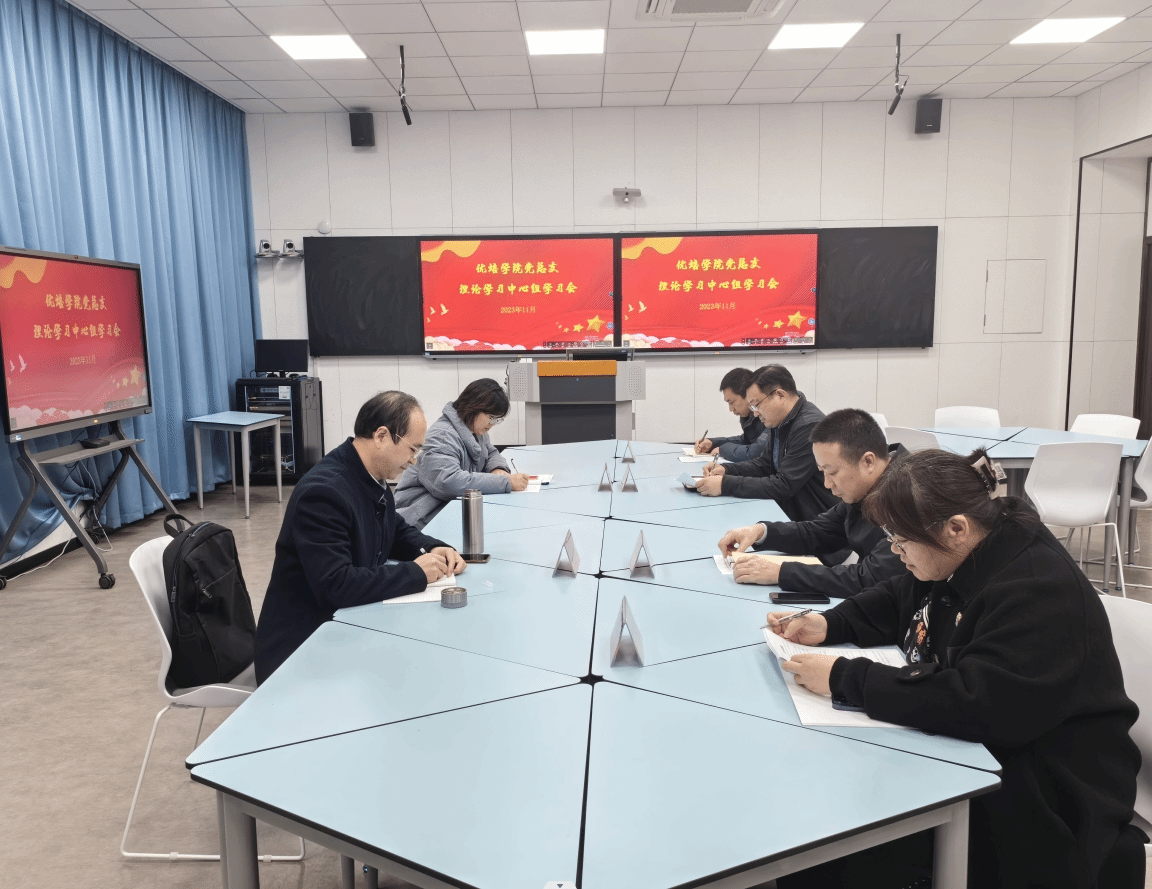11月16日下午,在南校区博学楼D314,优培学院党总支理论学习中心组开展2023年秋学期第三次学习研讨。校党委第三巡学旁听组组长钱长锋、成员束安娣到会指导,学院党总支书记李刚主持,理论学习中心组全体成员参加。