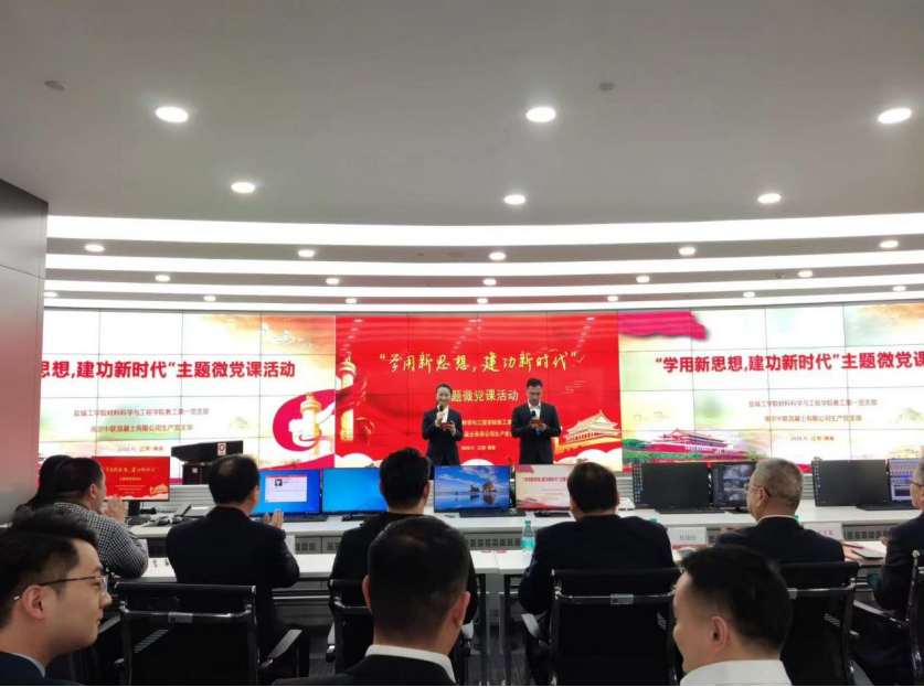 为深化校企党建共建,促进校企深度融合,11月24日下午,材料学院教工第一党支部与南京中联混凝土有限公司生产党支部共同举办“学用新思想,建功新时代”主题微党课活动。学院党委书记唐浩,院长罗驹华,南京中联混凝土有限公司党委委员、副总经理孙兵,党委委员、纪委书记杜晓松,总工程师王子龙,生产党支部书记葛士伟,材料学院副院长诸华军,教工党支部书记刘超与其他30余名党员出席活动。