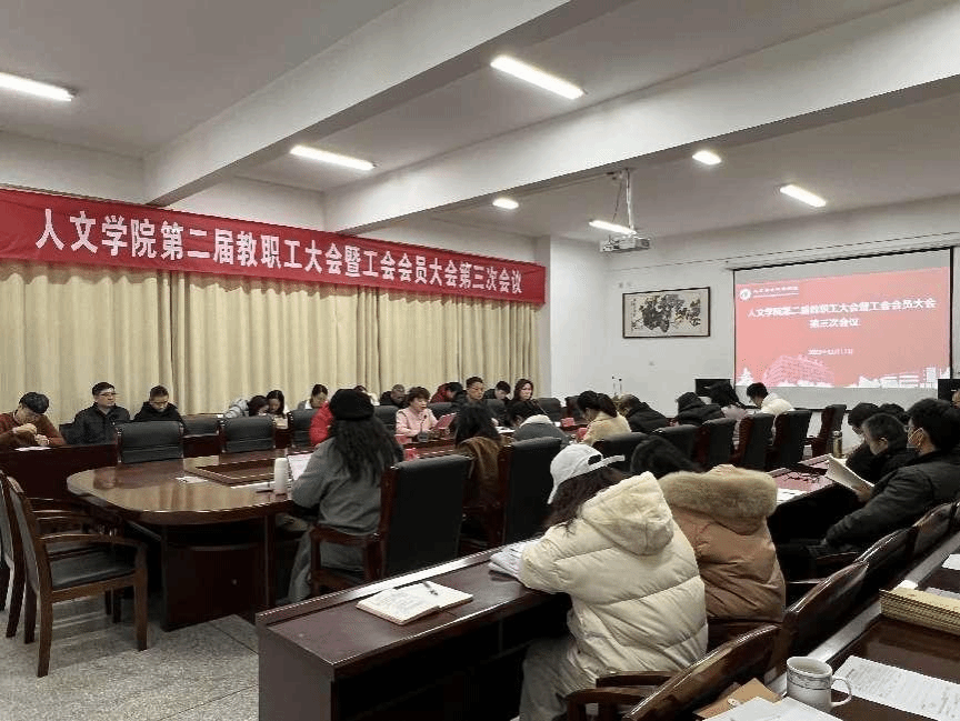 12月13日下午,人文学院在南校区仁和楼A304会议室召开第二届教职工代表大会暨工会会员代表大会第三次会议,会议由学院党总支副书记、分工会主席姚爱华主持,全体教职工参加。