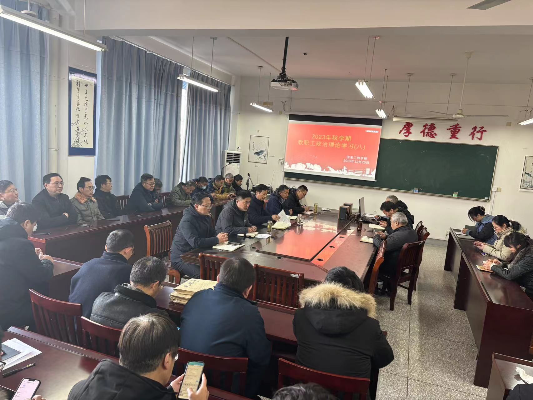 12月20日下午,在希望大道校区怀德楼B410会议室,信息学院组织开展2023年秋学期第八次教职工政治理论学习。活动由院党委书记王爱军主持,全体教职工参加。