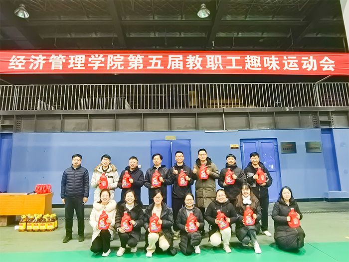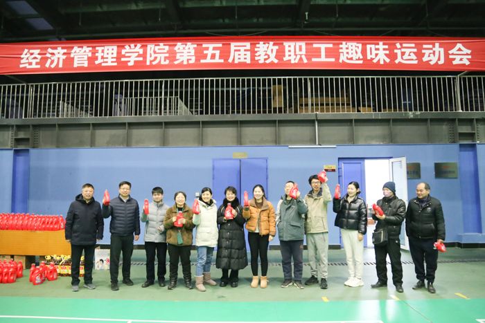 1月3日,经管学院在南校区风雨操场举办第五届教职工趣味运动会,一百多名教职工组成国贸队、金融队、工商队、应急物管与信管电商队、会计队、政工队等六个代表队参赛。院党委书记卜树春致开幕辞,院长赵永亮宣布开幕,院党委副书记周旺基主持开幕式,肖舒语老师代表参赛运动员宣誓,院学生会主席陈奕君同学代表全体裁判员宣誓,本次比赛还邀请了体育学院赵相宇老师介绍比赛规则。
