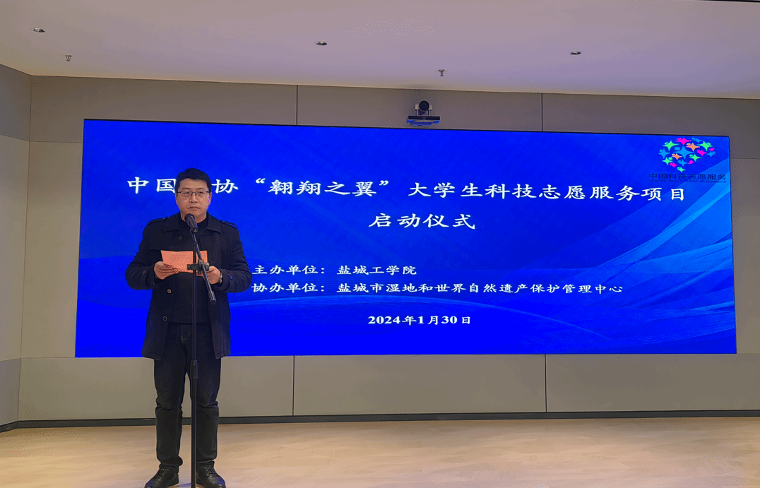 1月30日下午,《青春筑梦湿地,行动守护生态——以青春之名传承、弘扬、践行徐秀娟精神》中国科协“翱翔之翼”大学生科技志愿服务项目启动仪式暨盐城工学院大学生志愿服务实践基地揭牌仪式在中国黄海湿地博物馆举行。盐城市湿地和世界自然遗产保护管理中心副主任曹雷、宣教科科长陈娟、湿地博物馆相关负责人员、数理学院党总支书记魏伟华、学工办主任兼分团委书记孙杰、徐秀娟黄海湿地保护志愿者协会志愿者代表参加了活动。活动由数理学院专职辅导员黄小钢主持。