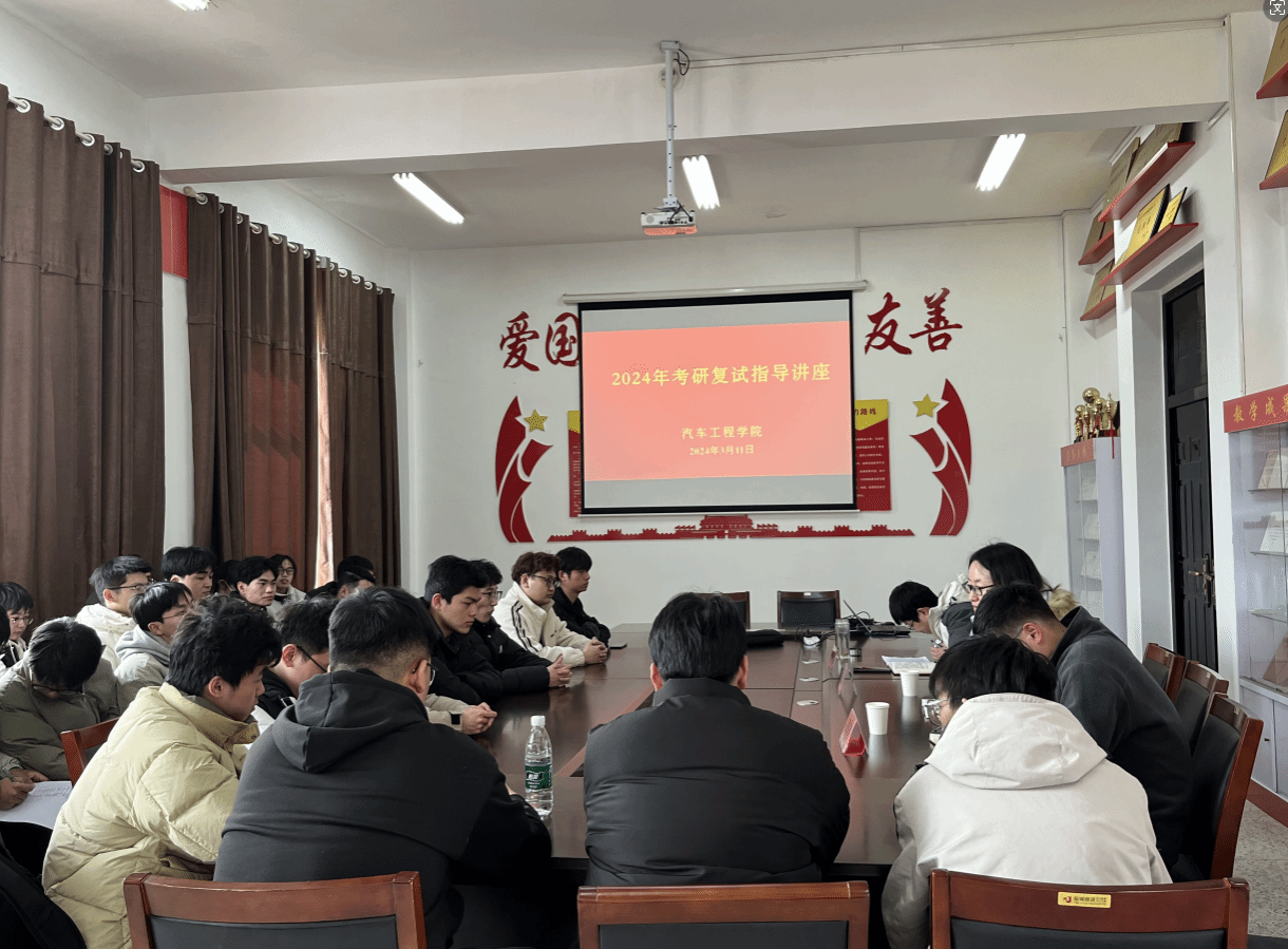 为扎实做好2024届毕业生考研复试、调剂指导工作,帮助学院考研学子掌握复试方法及技巧,提升复试和调剂成功率,3月11日下午,汽车工程学院举办2024年考研复试指导讲座,学院院长助理郑竹安、能源与动力系主任陈玉炜、车辆工程系教师万益东为学生进行针对性的答疑解惑。党总支副书记姜华主持。