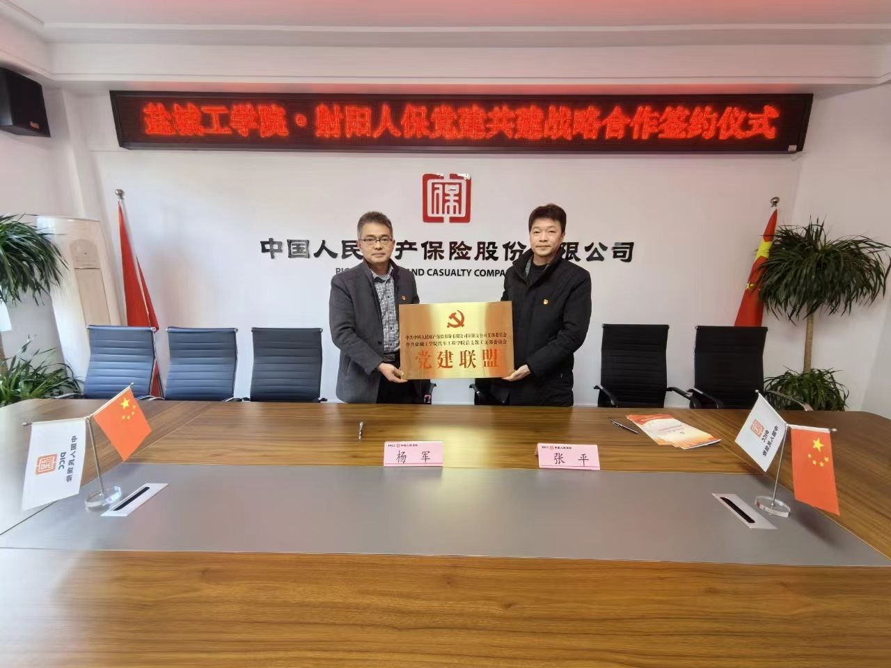 为全面落实新时代党的建设总要求,创新校企合作新模式,推进就业工作高质量发展,3月15日下午,汽车工程学院赴中国人民财产保险股份有限公司射阳分公司开展校企党建共建暨“访企拓岗促就业”专项活动。学院党总支书记杨军、副书记姜华、副院长熊新、院长助理郑竹安、教师代表耿龙伟、2020级辅导员孙雅与人保射阳分公司总经理张平等主要领导进行了座谈交流。