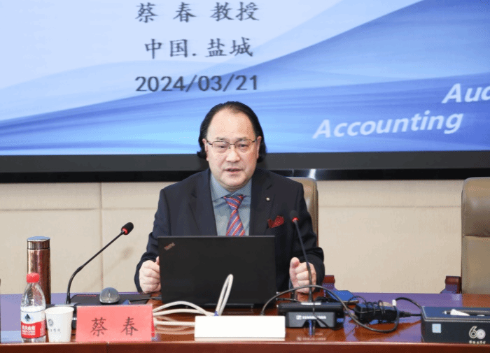 3月21日下午,在南校区行政楼九楼会议室,中国审计学会副会长、中国政府审计研究中心主任、财政部会计名家、国务院学位委员会全国审计专业学位研究生教指委委员、西南财经大学博士生导师蔡春教授来校作题为《推动会计审计学科高质量发展的思考与建议》的报告。盐城市审计局副局长陈献东、经管学院副院长张登兵、教科研办以及各专业系主任、会计学系教师参加。报告会由经管学院副院长李争光主持。