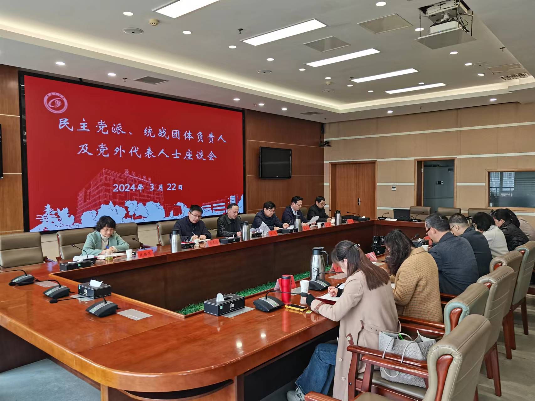 3月22日下午,在希望大道校区行政楼9楼视频会议室,学校召开民主党派、统战团体负责人及党外代表人士座谈会,传达学习上级文件精神,研究部署统战工作任务,就学校事业发展听取意见。校党委常委、统战部部长姚军主持会议。