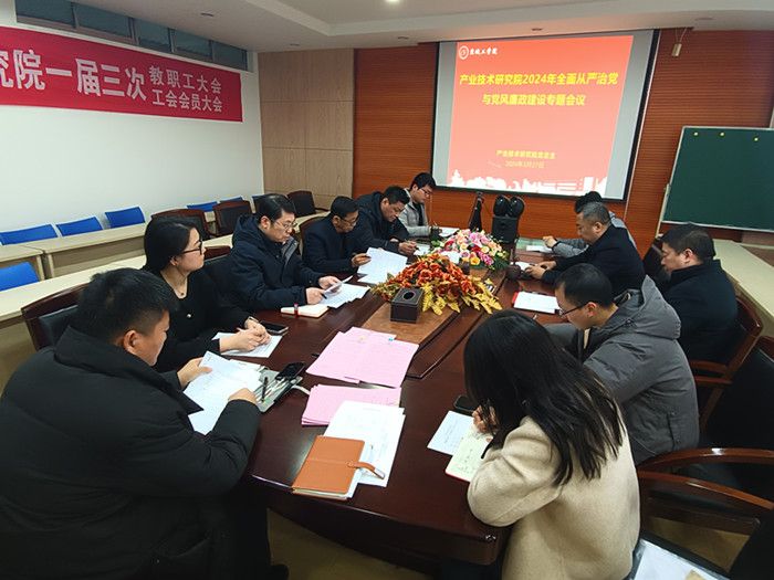 3月27日下午,在北校区知达楼AE209会议室,产业技术研究院党总支召开2024年全面从严治党与党风廉政建设专题会议。研究院党总支书记、院长严金龙主持,党总支理论中心组全体成员参加。