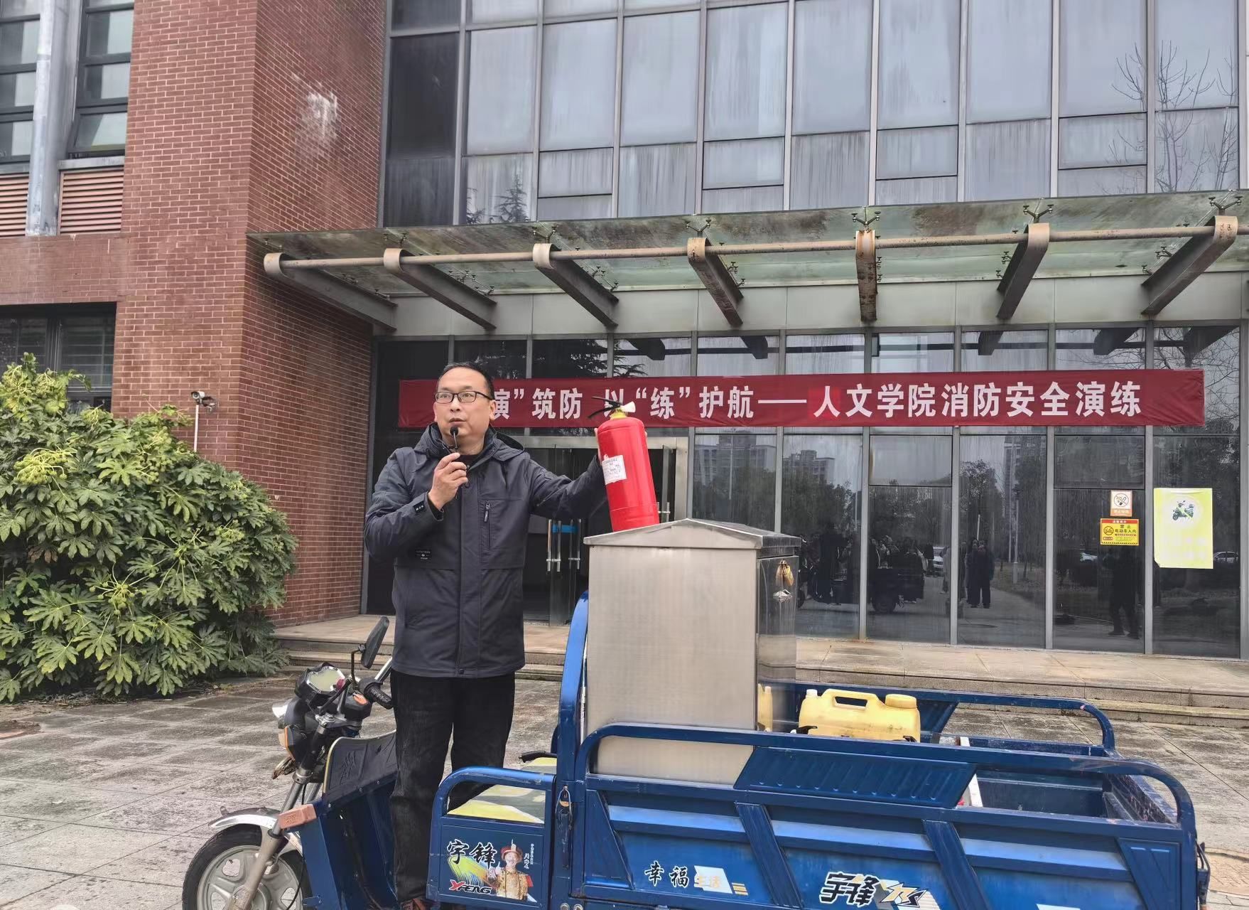为进一步提高师生消防安全意识,增强师生应对火灾的自救自护能力。3月27日下午,人文学院在南校区仁和楼C区开展“以‘演’筑防,以‘练’护航”消防安全演练。学院党总支书记何登溢、副院长陶文俊等百余名师生代表参加,党总支副书记姚爱华主持。
