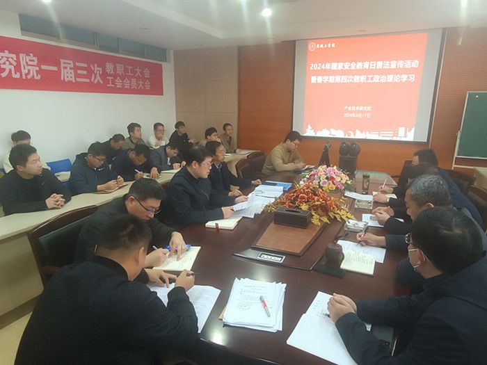 4月17日下午,在北校区知达楼AE209会议室,产业技术研究院组织开展国家安全教育日普法宣传活动暨第四次教职工政治理论学习。党总支书记、院长严金龙主持。