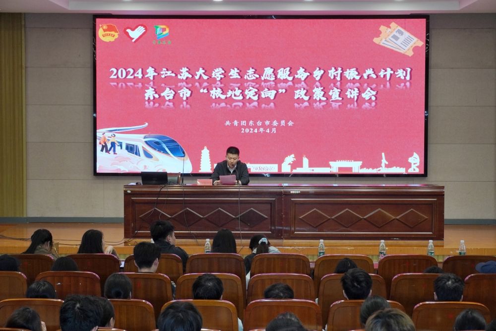 为落实《2024年江苏大学生志愿服务乡村振兴计划实施方案》,加深广大青年对乡村振兴计划的了解,鼓励青年学生积极报名参加乡村振兴计划,4月24日下午,校团委在希望大道校区举办2024年江苏大学生志愿服务乡村振兴计划(校地定向)招募宣讲会。活动邀请了东台团市委、盐都团区委、亭湖团区委乡村振兴计划项目办进行宣讲,校团委老师、各二级学院拟报名参加同学等180余人参会。会议由校团委副书记方璇主持。