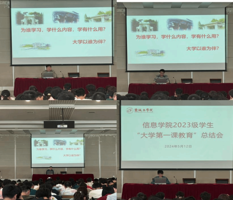 5月12日下午,信息学院在建军东路校区化工楼报告厅召开2023级学生“大学第一课”教育总结会,学院党委副书记戴建主持。辅导员席东风和赵艳老师、高年级优秀学生代表和2023级全体学生近500人参加活动。
