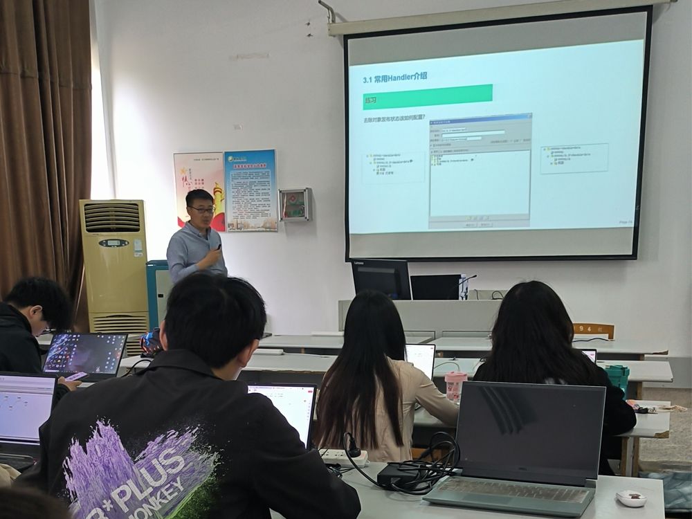 5月12日上午,张梦龙以“工作流程Handler开发”为主题,讲解了根据业务需求编写Handler的代码,可以使用Java编程语言以及Teamcenter提供的API进行开发,将开发好的Handler代码集成到Teamcenter系统中,并进行部署和配置,使其能够正常运行。他重点解答了Handler开发管理如何提高企业“三化”水平,从而提高企业设计、制造能力,让学生在学习知识的同时,也能清楚知识的运用过程,做到知行合一。
