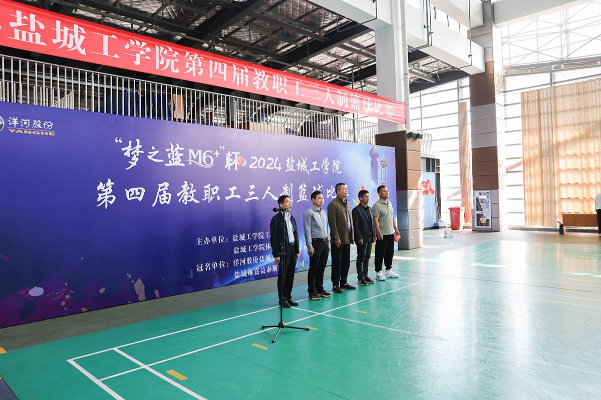 为倡导强身健体的运动理念,丰富教职工业余文化生活,营造健康向上的文化氛围,5月18日,我校在南校区风雨操场和北校区体育馆举行“梦之蓝M6”杯第四届教职工三人制篮球赛。体育学院党总支书记杨汉华宣布比赛开幕,为获特等奖代表队颁奖。体育学院副院长仇乃民代表组委会讲话,洋河股份盐城分公司大客户经理刘晨锡代表赞助商致辞,体育学院竞赛中心主任宁昌峰介绍比赛规则,全体领队、教练、运动员、裁判员和工作人员参加开幕式。组委会副主任谢毅敏主持开幕式和颁奖仪式。