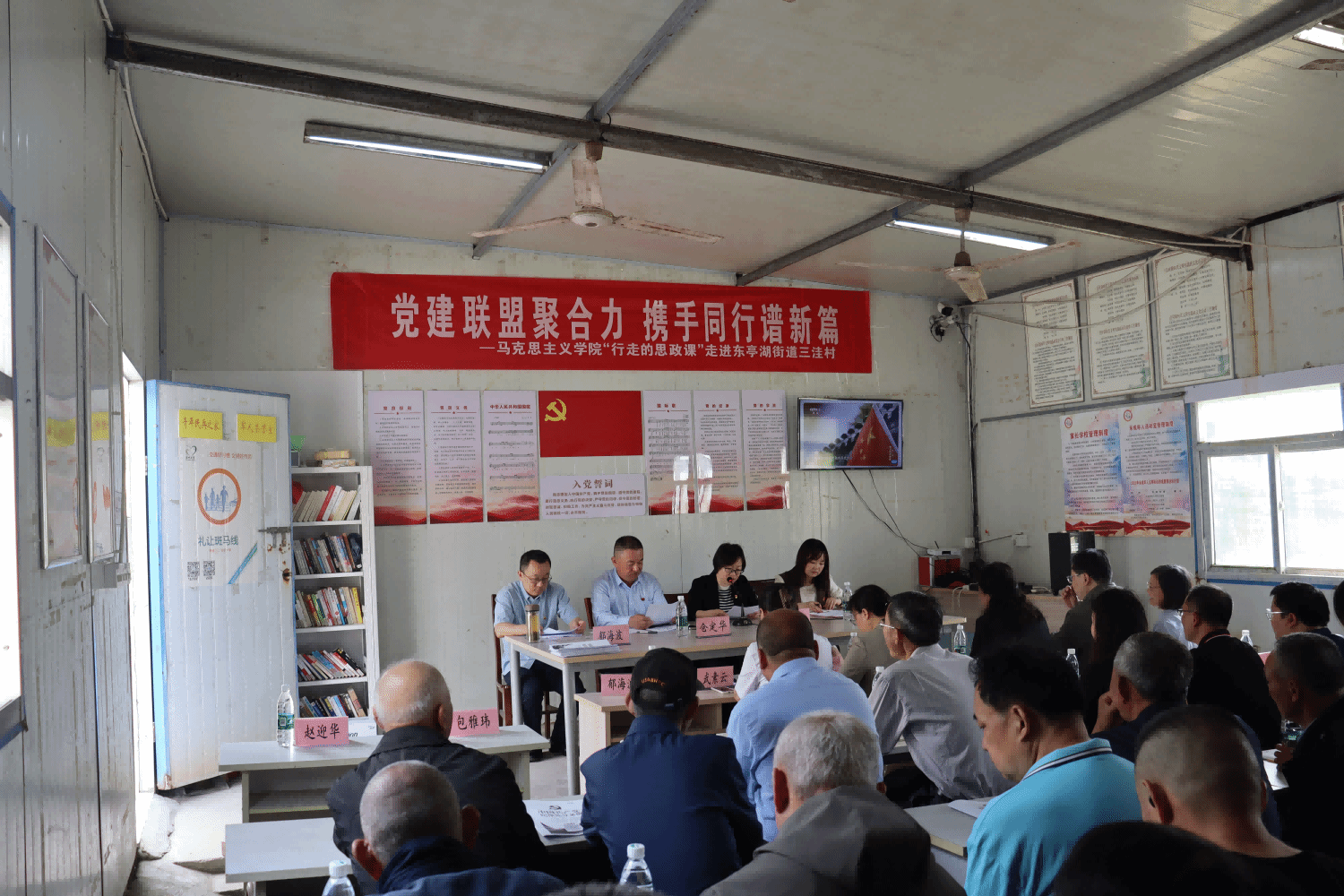 为深入学习贯彻党的二十大精神,进一步贯彻落实习近平总书记关于党的建设的重要思想,落实新时代党的建设总要求和新时代党的组织路线,5月20日上午,马克思主义学院一行14名党员教师走进盐城市亭湖区东亭湖街道三洼村开展“党建联盟聚合力 携手同行谱新篇”结对共建活动。三洼村党总支书记仓定华、副书记袁海勇出席。马克思主义学院院长、党总支书记包雅玮,副院长赵迎华、教工二支部书记郁海波及部分党员同志参加。仓定华主持。