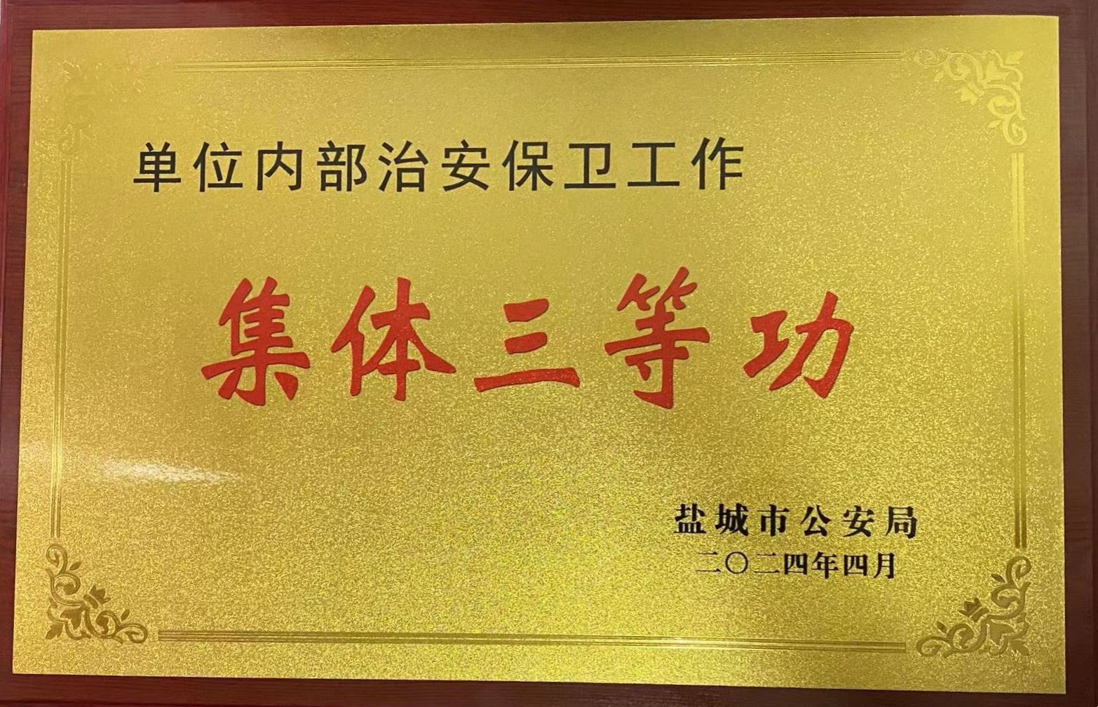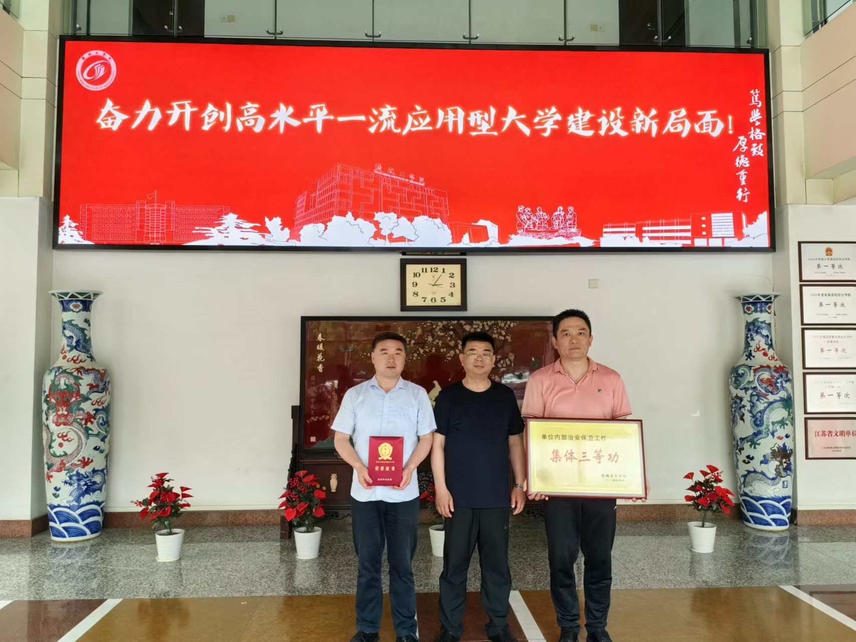 根据盐城市公安局2023年度企事业单位内部治安保卫工作表彰文件(盐公局〔2024〕112号),我校安全保卫处再次荣立“集体三等功”。至此,我校2021、2022、2023连续三年荣立“集体三等功”。我校安全保卫处处长张晓东被盐城市公安局表彰为单位内部治安保卫工作“先进个人”。