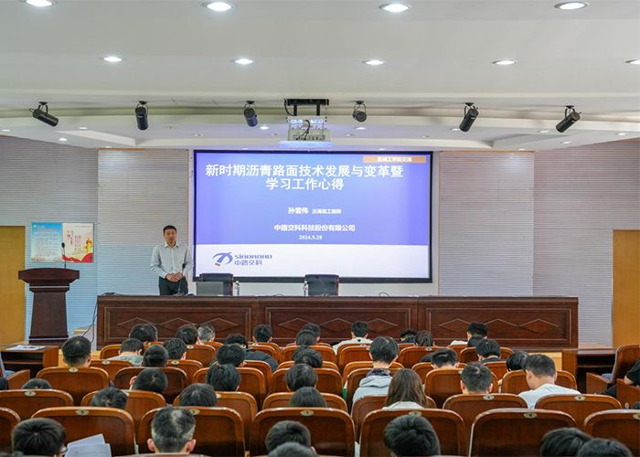 5月28日上午,中路交科科技股份有限公司总裁助理、江苏省产业教授孙雪伟应邀走进土木工程学院“路基路面工程”课堂,为土木工程专业交通土建工程方向学生讲授“新时期沥青路面技术发展与变革暨学习工作心得”。土木工程学院副院长李富荣和道路工程课程组相关教师参加。