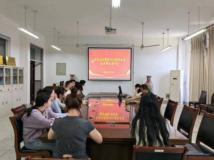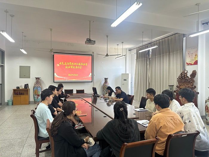于晨颖主持并通报学院2024届毕业生就业工作开展情况,并从当前的经济形势、市场环境和人才培养等方面,为毕业生分析当前的就业形势和就业困难原因,介绍学院促进毕业生就业工作的具体措施。