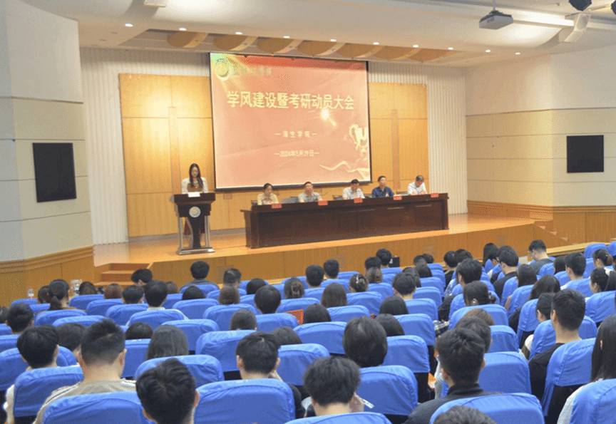 5月29日晚,海生学院在北校区图书馆报告厅举行2024年学风建设大会暨考研动员会,表彰在学风建设中涌现出的先进教师、优秀同学,进一步推进学院考研工作。会议由学院党总支书记高留才主持。院长彭斌,副院长齐志涛、刘飞,党总支副书记毕蕾,学工办副主任郭海松、全体专兼职辅导员,以及突出贡献教师代表和全体大三同学参加。