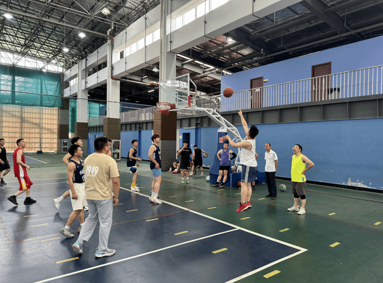 篮球场上,师生运动员们精神抖擞、全力以赴,呐喊助威声此起彼伏。在比赛初期,教师队凭借多年的配合经验,通过快速传导、传切、快攻、挡拆等手段频频得分,掌握了比赛的主动权。毕业生队也不甘示弱,经过初期的磨合,进攻逐渐流畅,凭借充沛的体力和身高优势,在篮板球保护方面尽显优势。运动员们一次次激烈的对抗、快速的突破、精准的投篮赢得了在场师生的阵阵掌声。