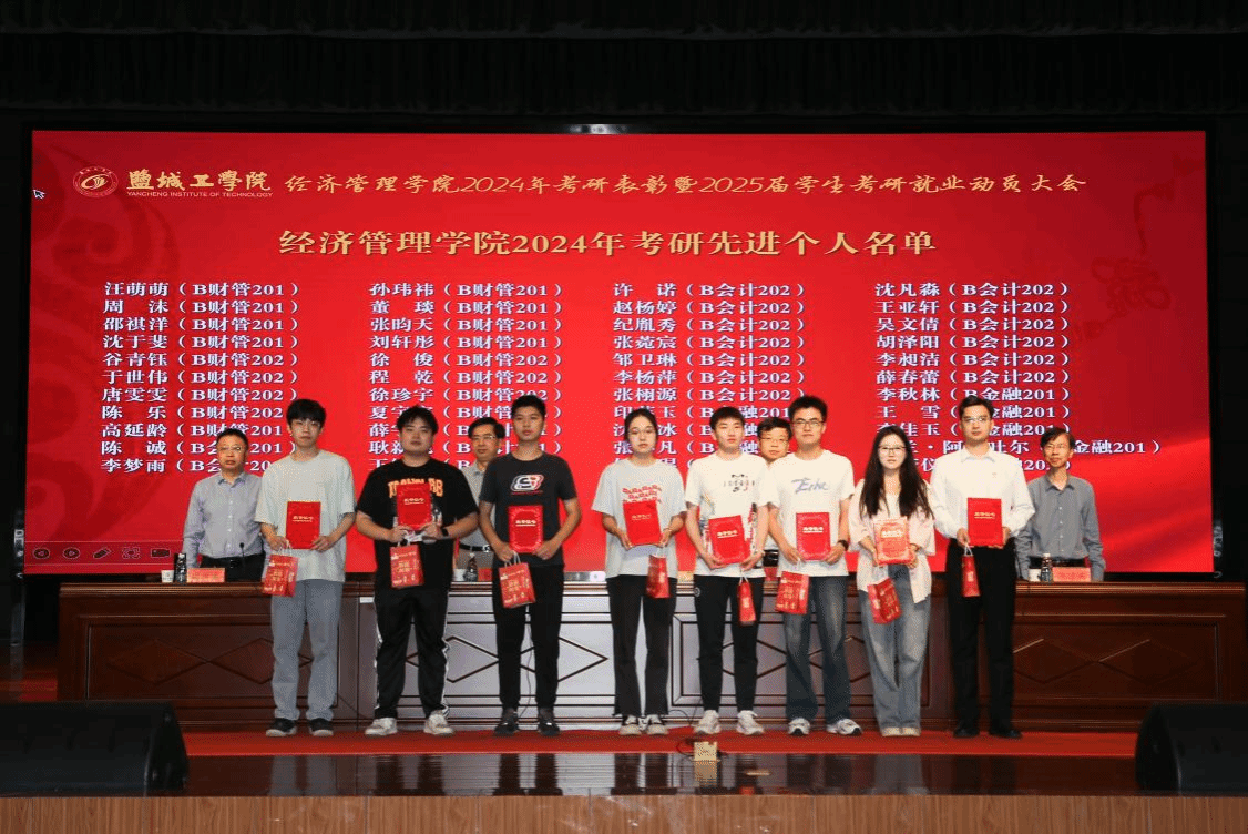 赵永亮宣读经济管理学院《关于表彰2024年考研先进个人的决定》,与会领导和老师为2024年考研先进个人颁发荣誉证书并合影留念。