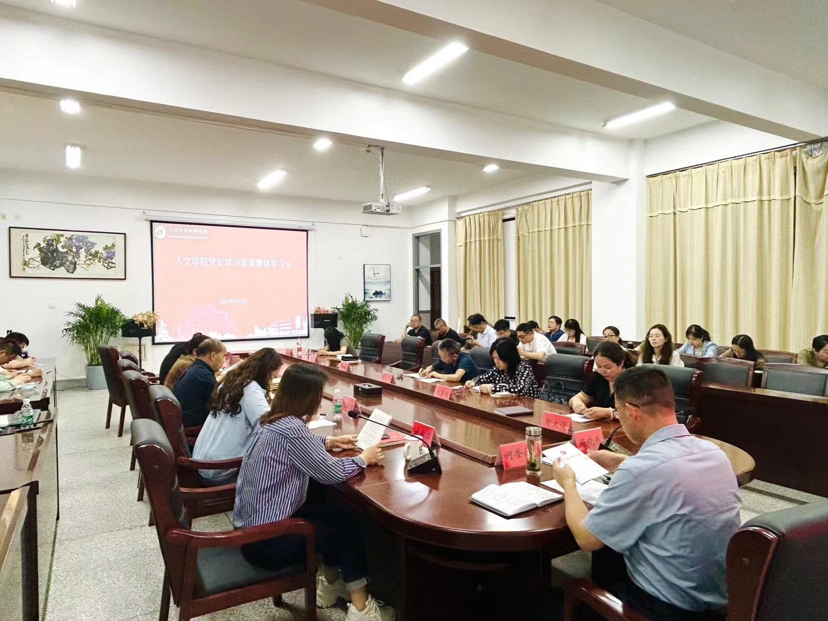 6月5日下午,在仁和楼A304会议室,人文学院党总支组织召开党纪学习教育集体学习会,重点学习《中国共产党纪律处分条例》。学院党总支书记何登溢主持会议,全体党员教师参加。