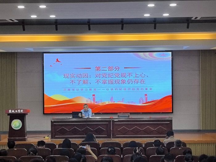 为进一步深化对加强党的纪律建设重要性的认识,准确把握党纪学习教育的目标要求,6月6日下午,纺织服装学院在南校区机械馆报告厅开展党纪学习教育专题党课,学院党总支书记宋孝浜作题为“开展党纪学习教育,以铁的纪律护航党的事业”的专题辅导报告,学院全体教职工、学生党员、发展对象、部分积极分子参加会议。