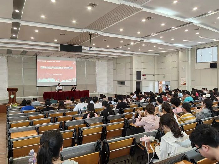 6月13日下午,学校在建军东路校区化工楼报告厅举办“国药试剂实验室安全公益讲座”。本次讲座由国药集团培训讲师朱晓顺主讲,化学化工实验中心主任冒爱荣主持,化工学院、材料学院、环境学院和海生学院等涉化学院的300余名师生参加。