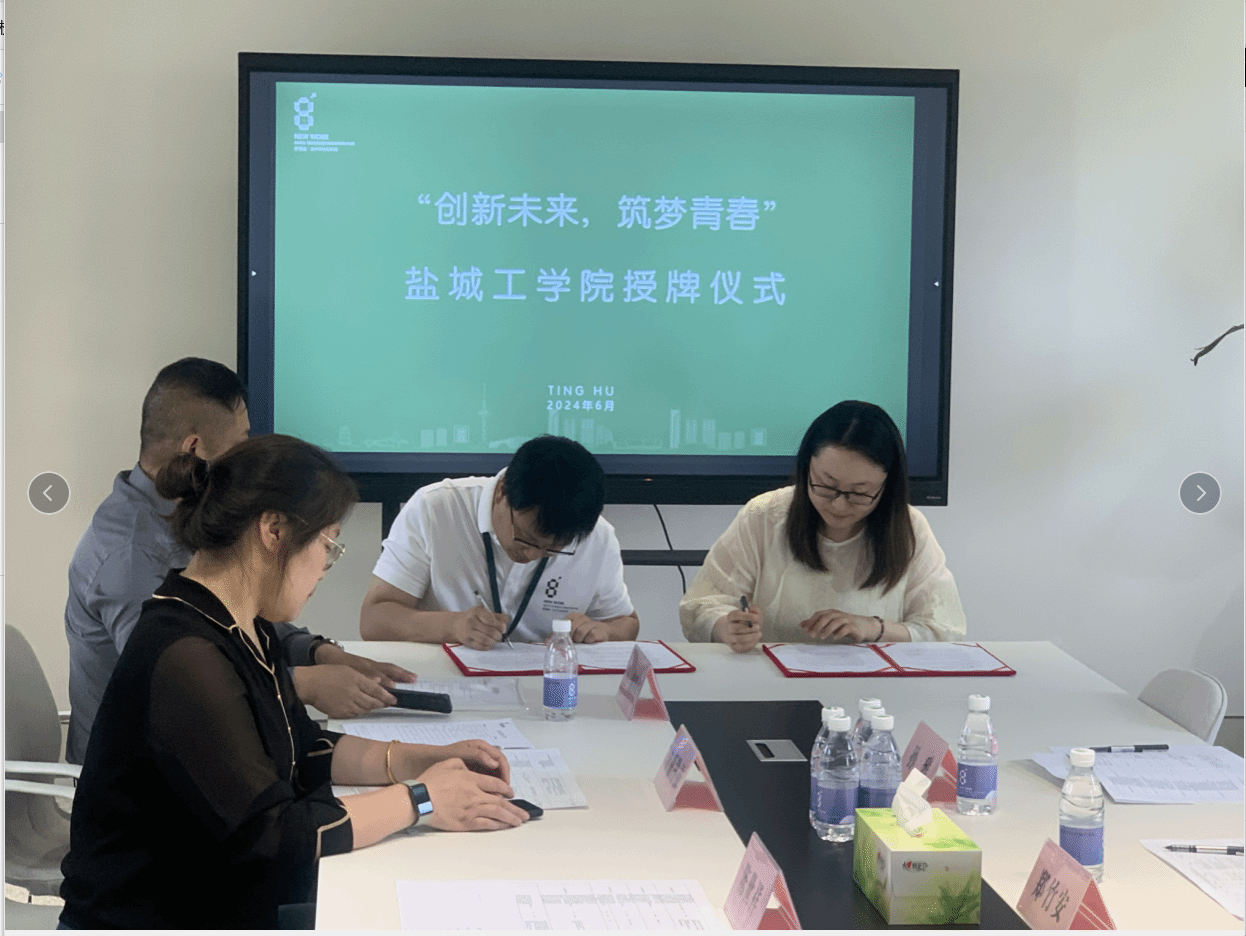 姜华与园区运营负责人苏凡博签署了《就业实习基地共建协议》,并进行就业创业实习基地授牌仪式。