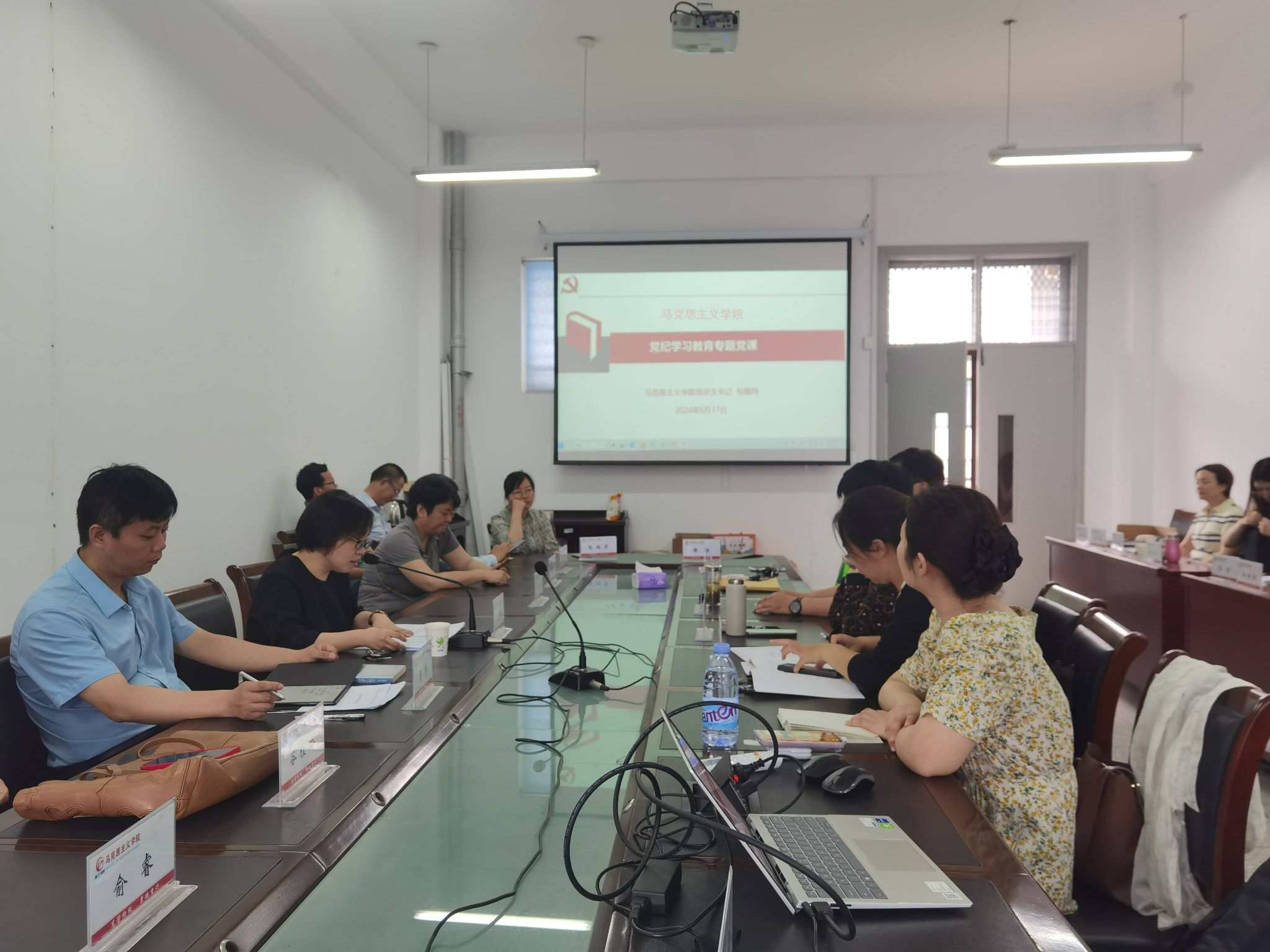 为进一步深化对加强党的纪律建设重要性认识,准确把握党纪学习教育的目标要求,6月17日上午,马克思主义学院在南校区博学楼A514开展党纪学习教育专题党课,学院党总支书记、院长包雅玮作题为“为奋进新征程提供坚强纪律保障”的《中国共产党纪律处分条例》专题辅导报告,学院全体党员、部分教师代表参加。