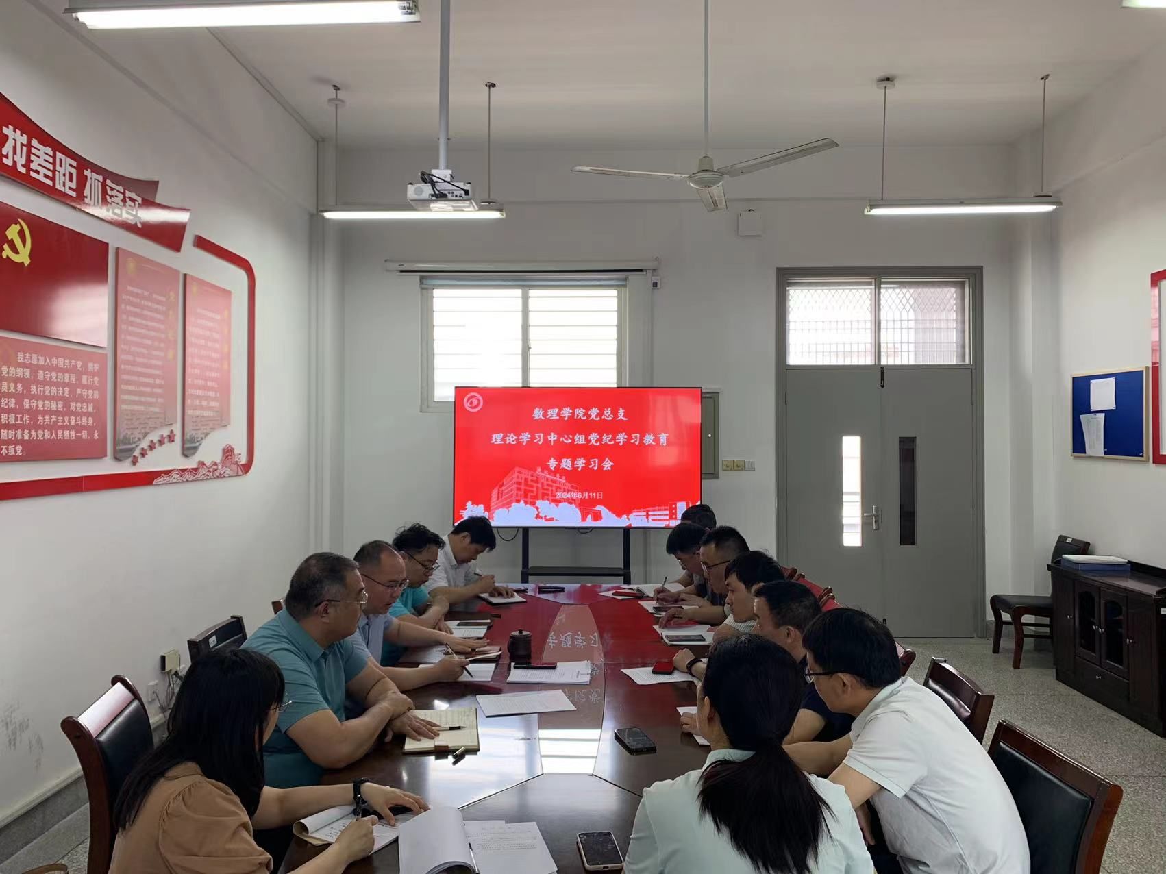 6月27日下午,数理学院党总支理论学习中心组开展党纪学习教育专题学习,会议由党总支书记魏伟华主持,理论学习中心组全体成员参加。