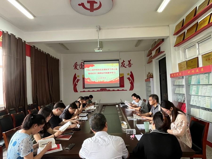 7月1日上午,在希望大道校区机械馆A323会议室,汽车工程学院举行党纪学习教育读书班暨党总支理论学习中心组集体学习会,围绕《中国共产党纪律处分条例》、习近平总书记关于全面加强党的纪律建设的重要论述、习近平总书记在中共中央政治局第十五次集体学习时、在重庆考察时、在山东考察时的重要讲话精神等开展集体学习,并就“用党规党纪校正思想和行动,真正使学习党纪的过程成为增强纪律意识、提高党性修养的过程,推动党纪学习教育走深走实、见行见效”进行交流研讨。学院党总支书记杨军主持会议,党纪教育读书班全体成员参加。