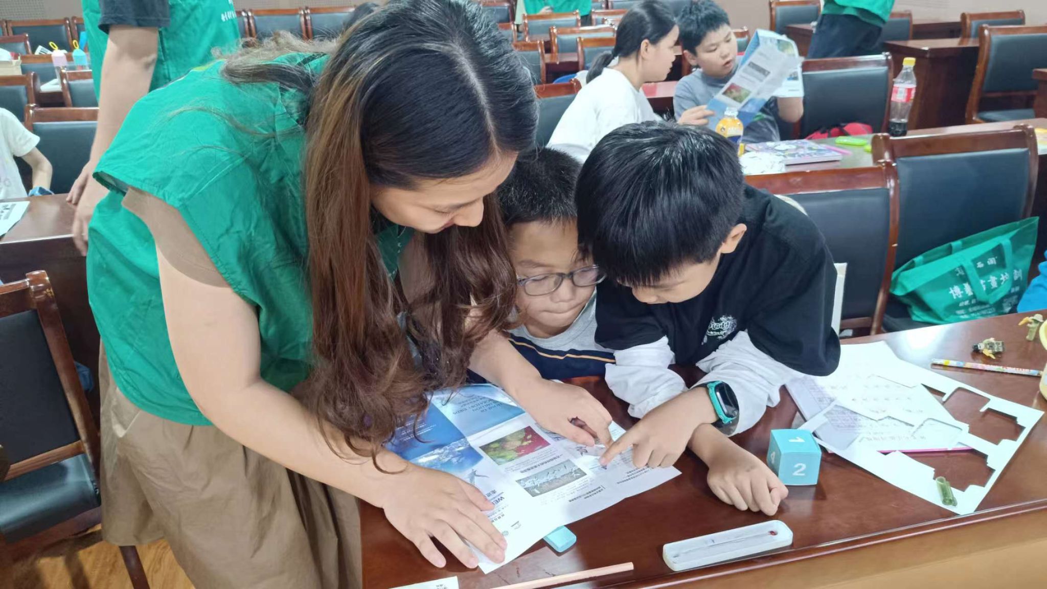 活动中,志愿者们向当地儿童分发湿地生态保护宣传彩页,彩页上一幅幅精美图片记录着大自然的美丽瞬间,也向孩子们传递着保护珍稀濒危动物和栖息环境的绿色生态理念。
