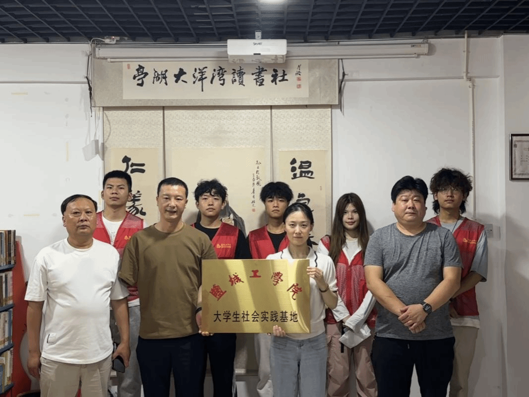 随后,学院一行来到亭湖大洋湾读书社,亭湖区南洋镇新洋村党总支副书记董茂友等热情接待。会上,叶禎菲与读书社社长陈羌现场签署《盐城工学院大学生实践基地共建协议书》,并举行挂牌仪式。双方还就如何深化后续合作进行了深入交流。