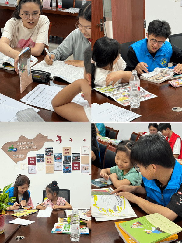 活动中,实践团成员开展安全教育,通过案例介绍假期安全注意事项,向留守儿童讲解生活技能和解决问题的技巧。实践团成员开展公益辅导,针对大家的学习情况讲解课程知识点,辅导学生完成题型训练。实践团成员开展文化活动,组织猜字谜、套圈圈、夹玻璃珠等趣味游戏,增进小朋友们的交流,促进身心健康发展。实践团成员开展读书活动,与儿童一起阅读书籍,分享读书感受,引导孩子们喜爱阅读、养成阅读习惯。信息学院实践团还向社区儿童赠送了数十本青少年儿童课外书。