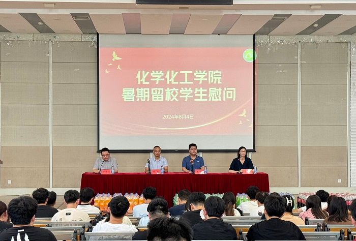 为全面了解暑期留校学生的思想、学习、生活情况,帮助学生缓解备考压力,增强迎考信心,8月4日下午,化学化工学院在北校区化工楼报告厅开展2024年暑期留校学生慰问活动。院长戴勇、党委书记庞辉、党委副书记邵景玲、2021级辅导员及全体留校考研学生参加,学生工作办公室主任李慧主持。